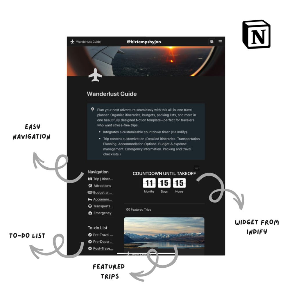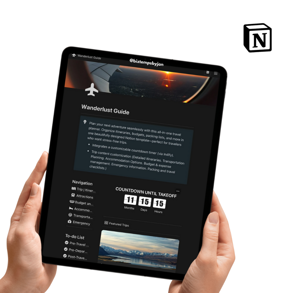 Plan your next adventure seamlessly with this all-in-one travel planner. Organize itineraries, budgets, packing lists, and more in one beautifully designed Notion template—perfect for travelers who want stress-free trips.